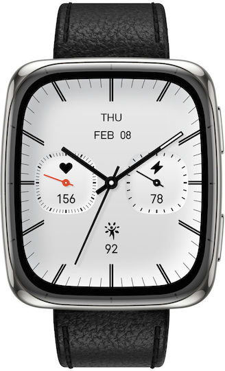 Amazfit Active 2 Square Stainless Steel 43mm Αδιάβροχο Smartwatch με Παλμογράφο (Μαύρο)